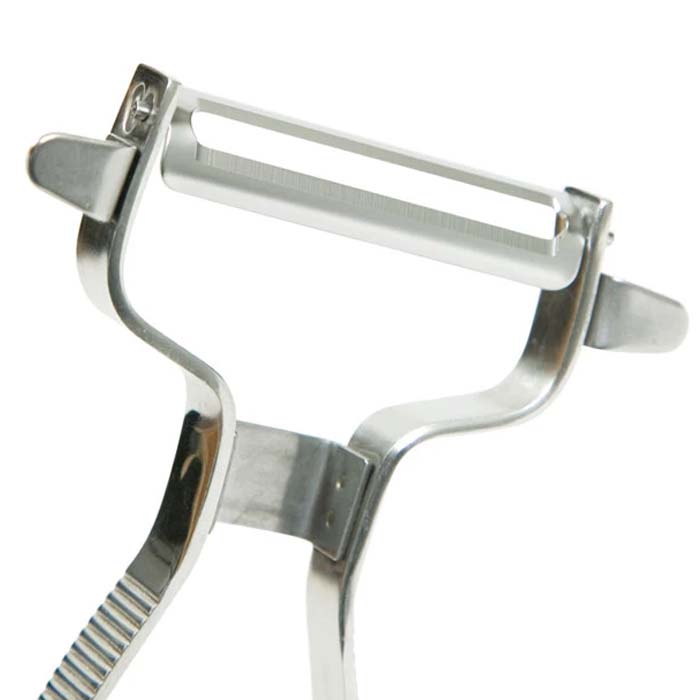 ● Stainless steel construction with moderate hardness allows vegetables to be peeled thinly and evenly.