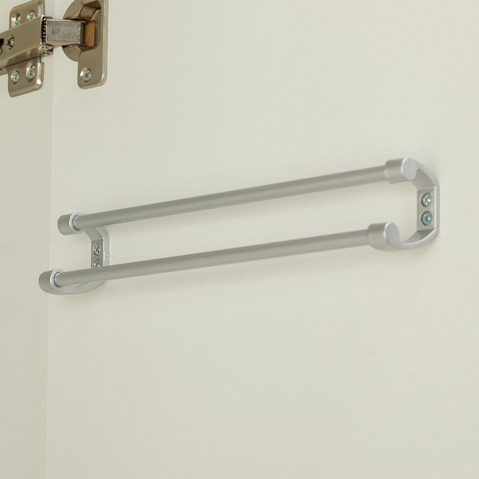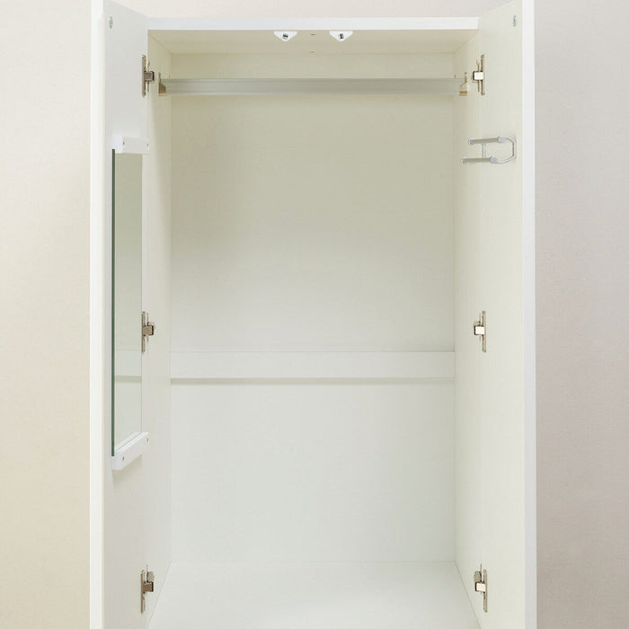 The magnetic door closes tightly and is equipped with a tie hanger behind the door and a mirror for checking your appearance.