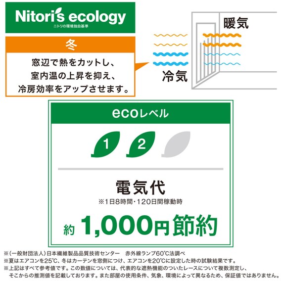 ( Light blocking level based on Nitori standards. There are 5 levels from level 1 to 5. The higher the number, the harder it is for light to pass through.) Shape memory processing that keeps folds clean even