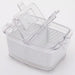 ●With drain hole on the bottom[Capacity]700mL [Size (approx.)]16.3×10.5×8.1cm[Raw material resin]Body/lid: PET (heat resistant Temperature 60℃/Cold resistant temperature -30℃)Ventilator cover/basket: ABS resin (Heat resistant temperature 90℃/Cold resistant temperature -30℃) Hole mounting cap: Silicone rubber (heat resistant temperature 260℃/cold resistant temperature -30℃)[Other specifications]