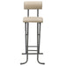 It does not close on its own. It comes with a stopper for added safety. The seat height is about 66 cm, so it is also recommended for counters!