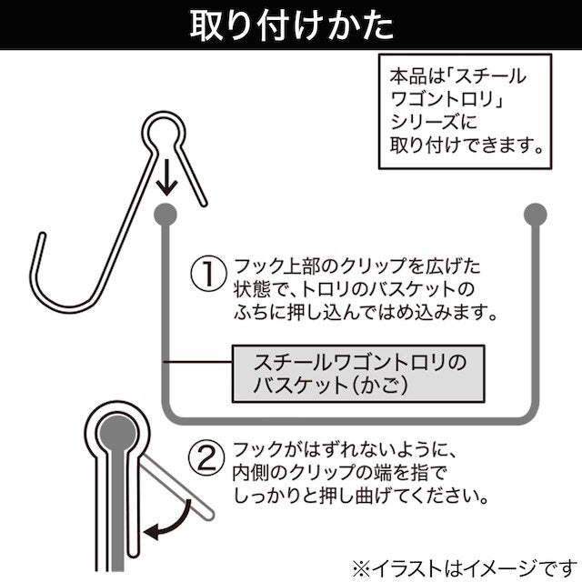 ●Hooks that can be attached to "Height-adjustable steel wagon Trolley/Trolley Compact" and "Lightweight and easy-to-move steel wagon Trolley/Trolley Compact"